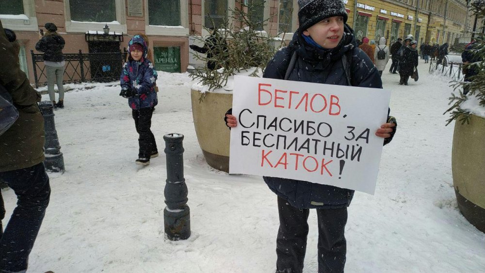 Активисты стояли в одиночных пикетах на Невском проспекте и на Малой Садовой улице. Роман Самойлов держал плакат с надписью «Только Госдума обижается на правду». У Александра Миронова был плакат «Беглов, спасибо за бесплатный каток».