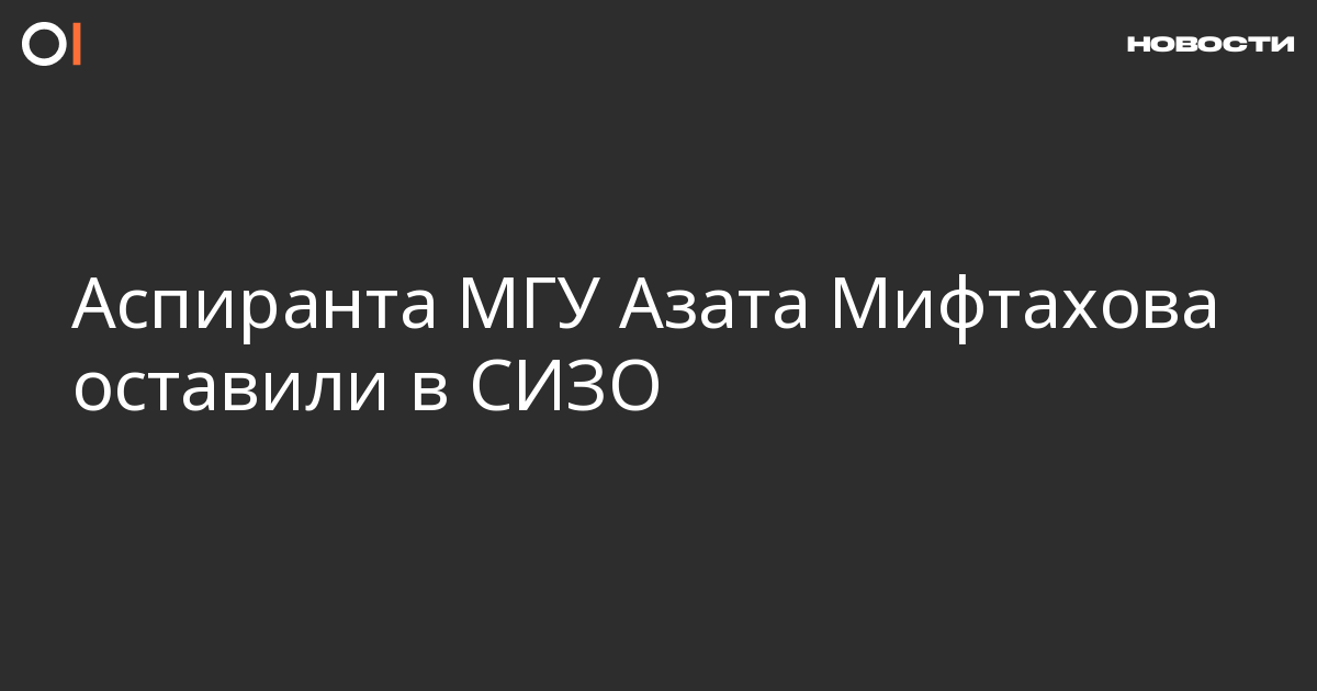 Мосгорсуд отклонил апелляцию на арест аспиранта МГУ Азата Мифтахова, обвиняемого по делу о разбитом окне в офисе «Единой России». Об этом сообщает «МБХ Медиа».