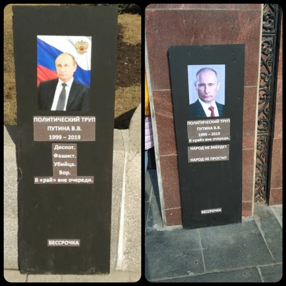 - 5 апреля в Петербурге за акцию с надгробием Путина на девять суток арестовали гражданского активиста Андрея Жексимбаева. На него составили протокол о проведении мероприятия без согласования с властями.