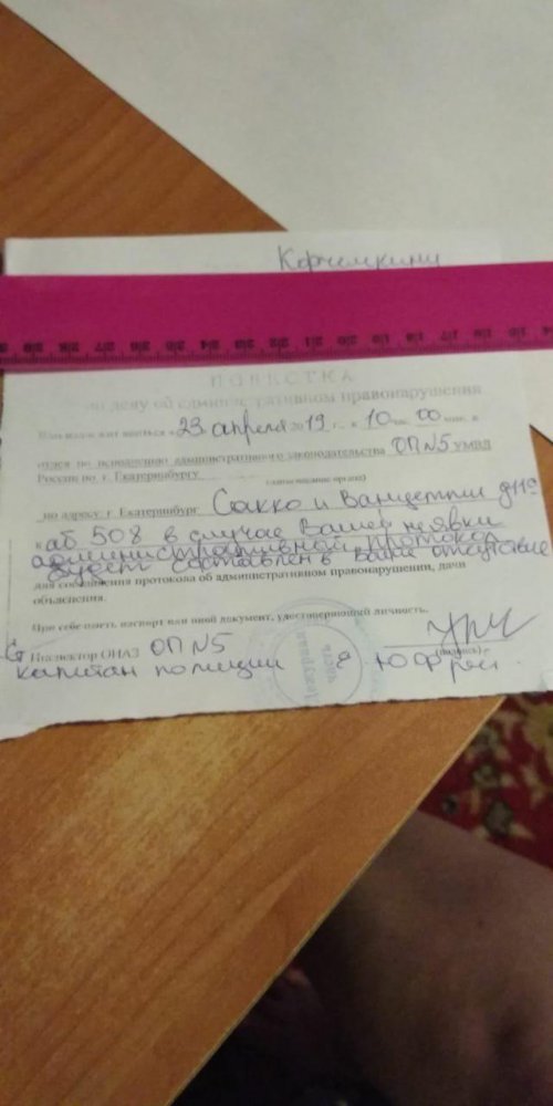 20:15 Михаила Клюкина отпустили из отдела полиции. Об этом сообщила Галина Королева. Протокол об административном правонарушении на него составлять не стали, но вручили повестку, обязывающую явиться в отдел утром 23 апреля.