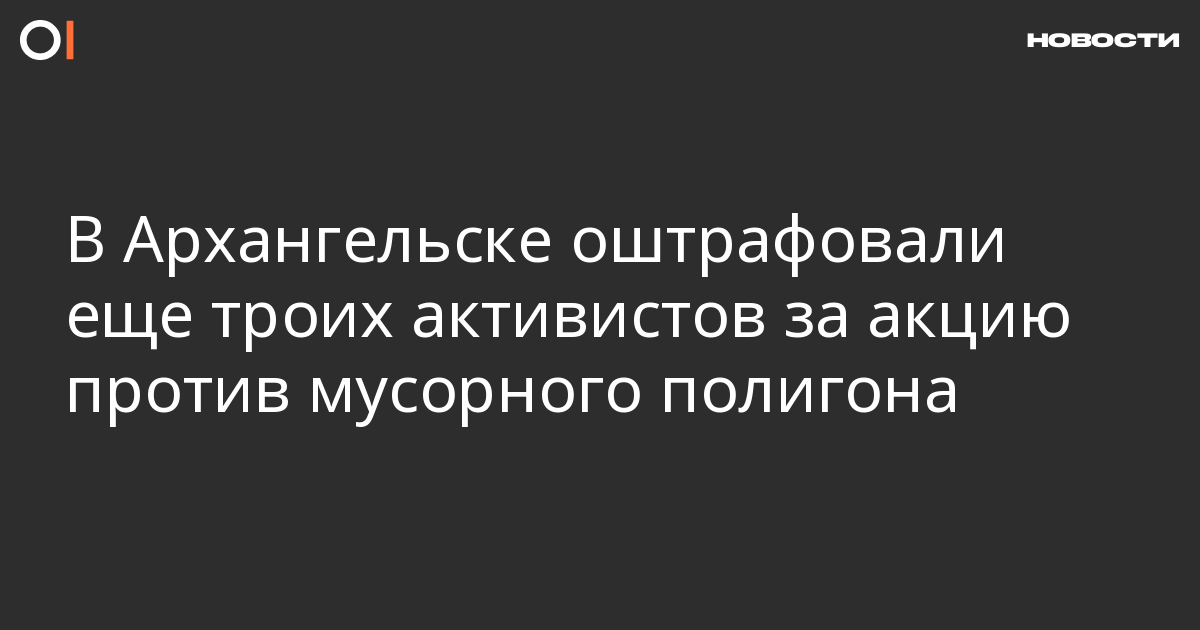 Октябрьский районный суд Архангельска 21 апреля оштрафовал еще троих участников акции 7 апреля против мусорного полигона в Шиесе, пишет «7×7» со ссылкой на защитника Алексея Куроптева.