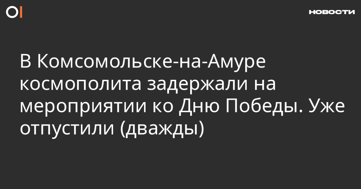 В Комсомольске-на-Амуре полиция задержала бывшего нацбола на городском мероприятия ко Дню Победы. В беседе с ОВД-Инфо задержанный назвал себя космополитом и попросил не указывать его настоящие имя и фамилию.