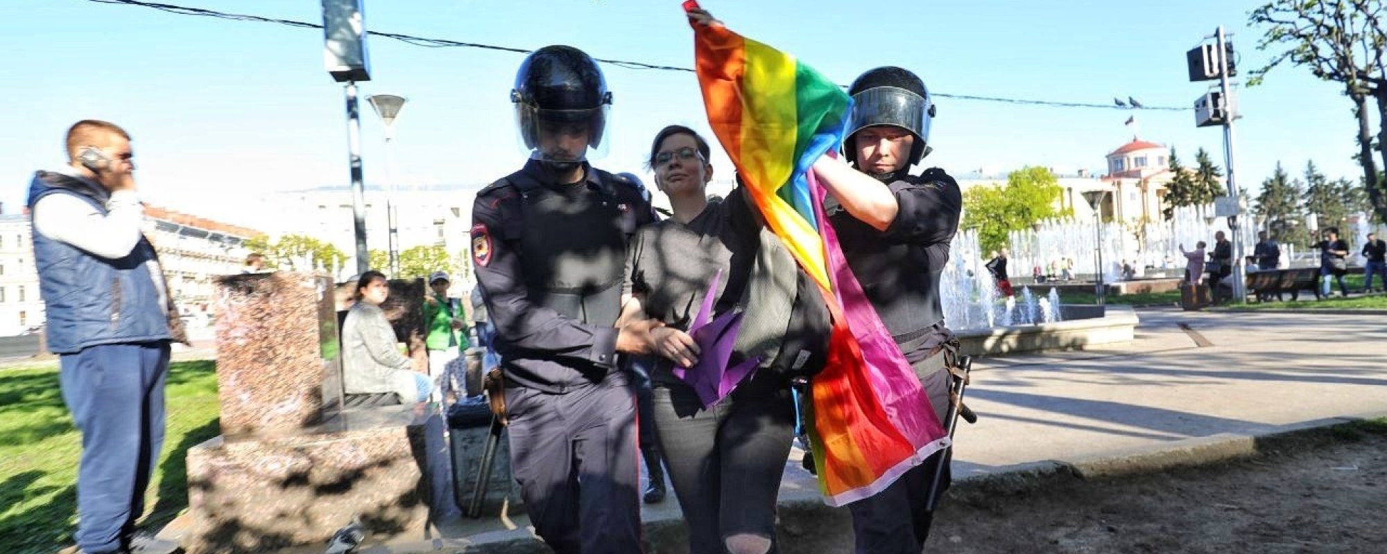 В Петербурге в международный день против гомофобии, трансфобии и бифобии полиция задержала пятерых участников радужного флешмоба, адвоката и еще одну женщину. Об этом ОВД-Инфо сообщила одна из задержанных Аста Коврова.