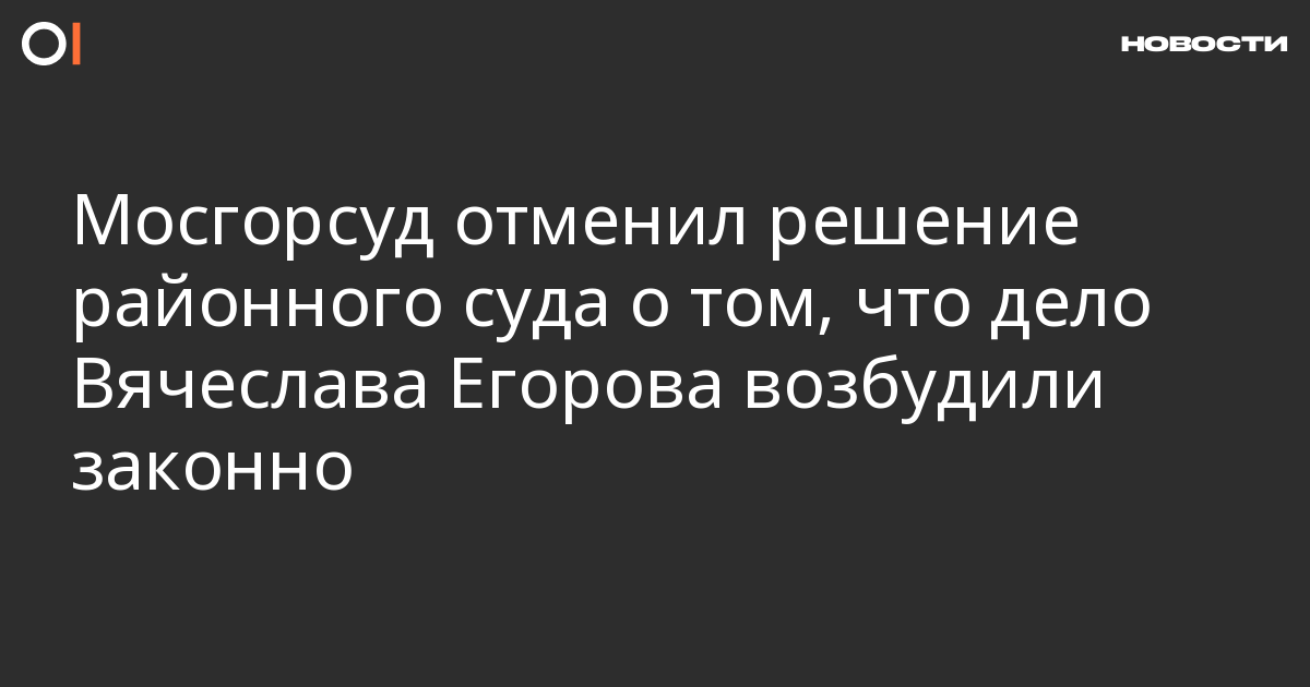 Московский городской суд отменил постановление Бабушкинского районного суда о том, что уголовное дело коломенского активиста Вячеслава Егорова по «дадинской статье» возбудили законно. Об этом рассказала адвокат Мария Эйсмонт, которая представляет интересы активиста от ОВД-Инфо и «Руси сидящей».
