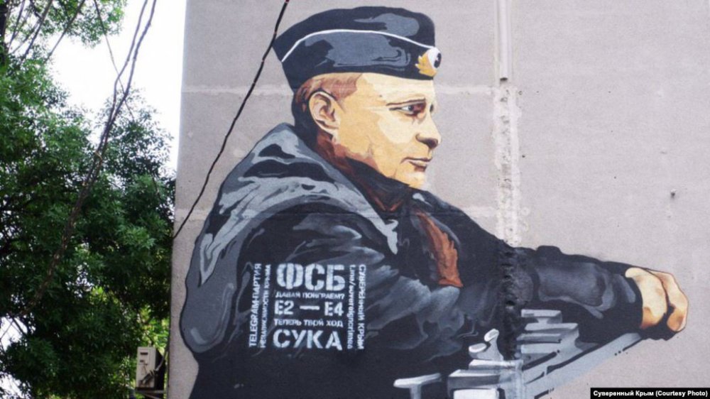 Телеграм-канал «Суверенный Крым» приобрел известность после того, как в Симферополе 21 мая на фасаде одного из центральных домов, где находится мурал с изображением Владимира Путина, неизвестные нанесли трафаретную надпись: «ФСБ, давай поиграем? Е2 — Е4. Теперь твой ход, сука». К тексту приложена подпись — «Телеграм-партия „Суверенный Крым“», — а также ссылка на телеграм-канал.
