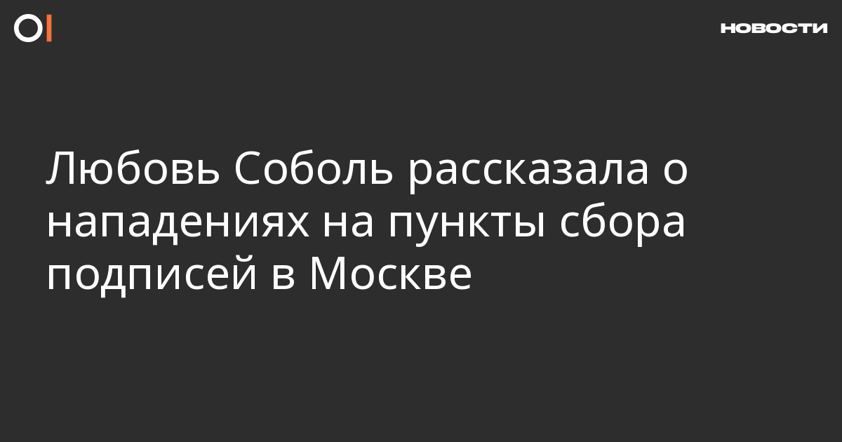 • Нападения на пункты сбора подписей — не первый случай давления, который Любовь Соболь связывает со своим выдвижением в Московскую городскую думу. Ранее, 29 мая, Соболь рассказала о закрытии студенческого шоу «В точку! Персона» в Высшей школе экономики. Студенты пригласили Соболь в качестве гостя, но за день до интервью руководство ВШЭ сообщило о закрытии шоу.