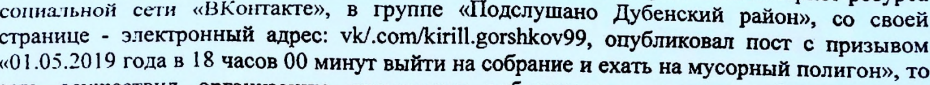 До этого районный суд вменил Горшкову проведение акции без подачи уведомления (ч. 2 ст. 20.2 КоАП) якобы за сообщение с призывом выйти на акцию в групповом чате во «ВКонтакте».