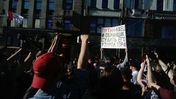 Васильева задержали за плакат, в котором он назвал Путина узурпатором, а Соловьева — за плакат с надписью «Пудинг лор».