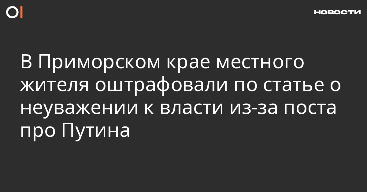 Уссурийский районный суд Приморского края оштрафовал на 30 тысяч рублей местного жителя Алексеева А. И. по статье о неуважении к власти из-за поста про Владимира Путина. Об этом сообщает «МБХ медиа» со ссылкой на карточку дела на сайте суда.