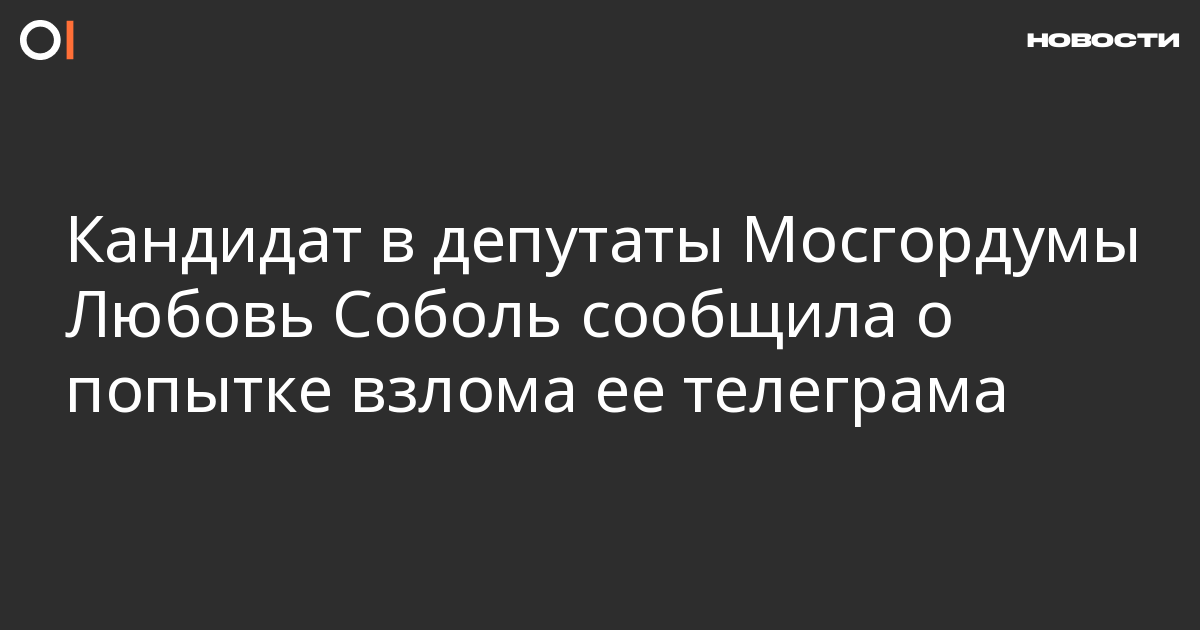 Кандидат в депутаты Московской городской думы и сотрудница Фонда борьбы с коррупцией Любовь Соболь сообщила, что ее телеграм-аккаунт пытались взломать. Об этом она написала в своем твиттере.