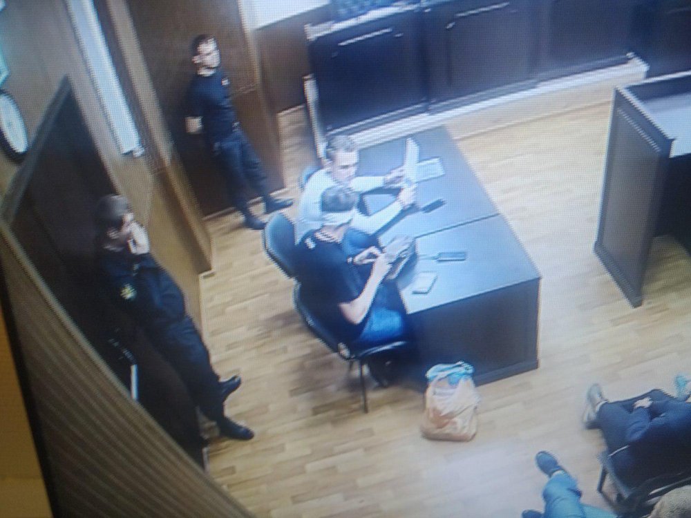 20:15 Александр Арчагов продолжил участие в судебном заседании с забинтованной головой.