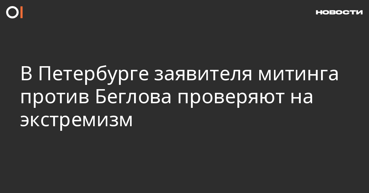 Заявителя митингов за отставку исполняющего обязанности губернатора Санкт-Петербурга Александра Беглова, кандидата в губернаторы города Александра Головко проверяют на экстремизм. Об этом сообщается в группе «Бездомный дольщик» в социальной сети «ВКонтакте».