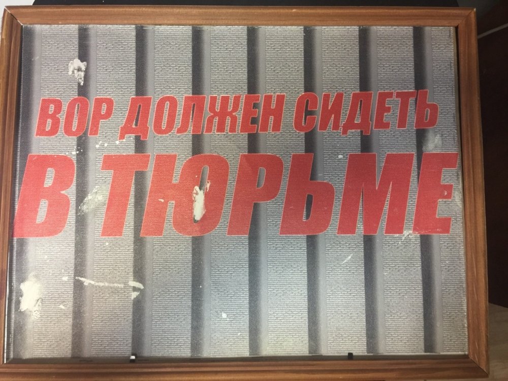 Бердников рассказал, что нередко носит с собой небольшую картину с надписью «Вор должен сидеть в тюрьме», упакованную в пакет. Ранее в различных районных судах и даже в Верховном суде у него не было поблем с доступом на заседания.