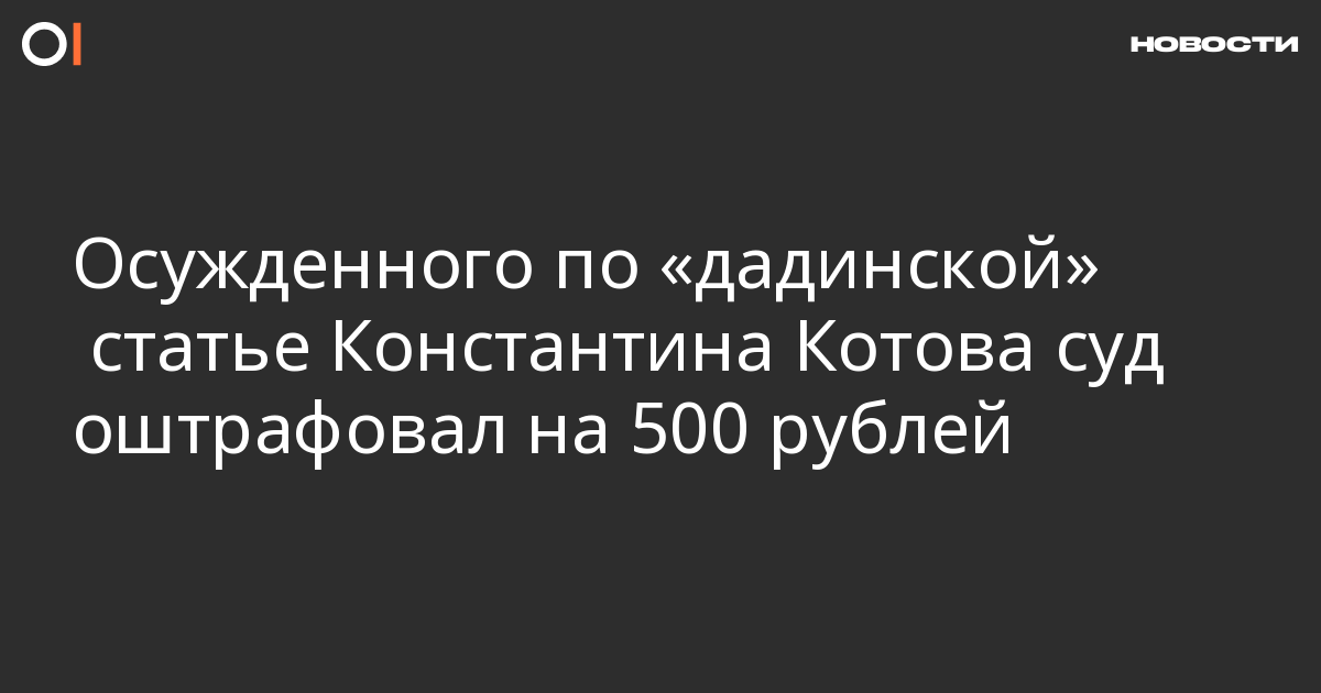 В Реутове мировая судья назначила Контантину Котову штраф в размере 500 рублей по статье о неповиновении судебному приставу (ст. 17.3 КоАП). Об этом сообщает телеграм-канал «Константин Котов INFO».