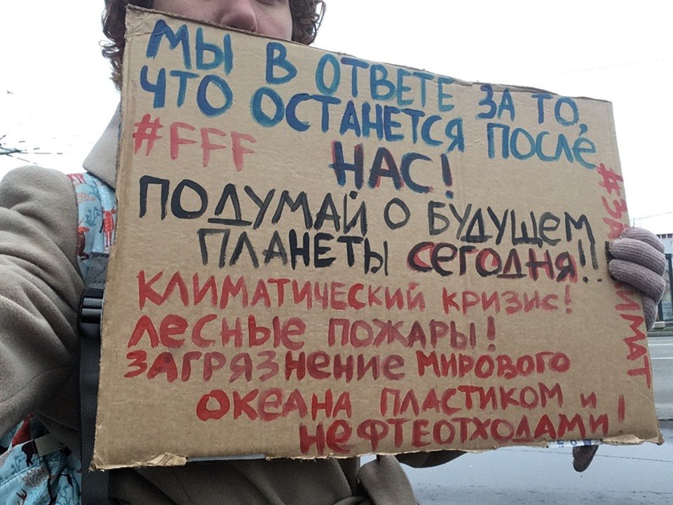 За несколько дней до визита силовиков активистка проводила одиночный пикет на тему загрязнения Земли. После этого она подала уведомление в администрацию города о проведении массового пикета в день всемирной забастовки в защиту климата.