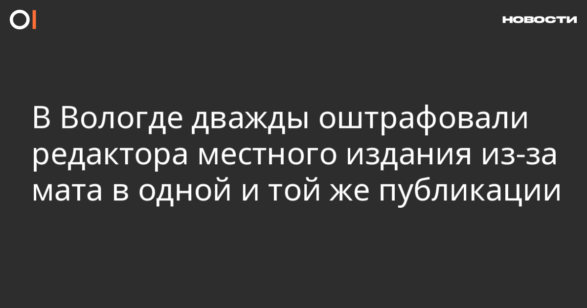 В Вологде главного редактора местного издания NewsVo.ru Евгению Сибирцеву оштрафовали на 5 тысяч рублей из-за слова «хули» в одном из блогов на сайте издания. Судебные приставы дважды сняли сумму штрафа с разных счетов Сибирцевой. Об этом сообщает «7×7».