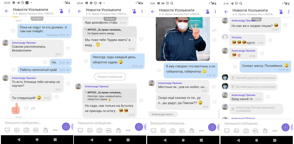 Некий Александр Призма написал в группу жителей Усольска-Сибирского в мессенджере Viber сообщения, где, в частности, упомянул нападение на депутата Сергея Угляницу 29 октября.
