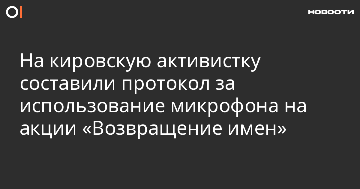 В Кирове на активистку Светлану Марину составили протокол за «незаконное» использование звукоусиливающей аппаратуры на акции «Возвращение имен». Об этом сообщает издание «7×7».