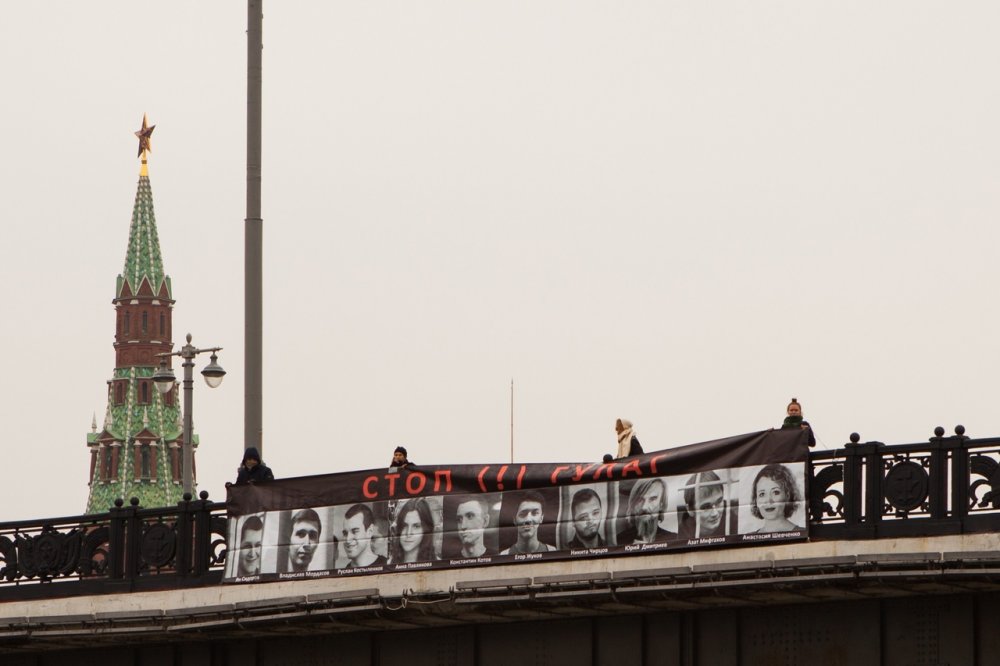 - 8 ноября активисты Pussy Riot и «Декоммунизации» вывесили на Большом Каменном мосту баннер с надписью «Стоп (!) ГУЛАГ». «Государственный террор — это не только прошлое, это — настоящее. Поэтому мы вышли сегодня к Кремлю, на Большой Каменный мост», — заявили участники акции.