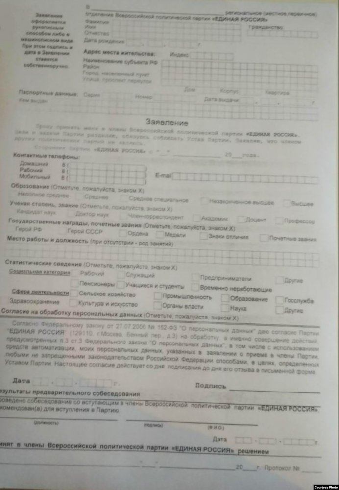 Причины для принуждения к массовому вступлению в «Единую Россию» не объяснили.