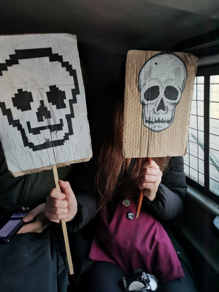 Полиция задержала Марию Воногову, еще одну активистку (ее имя удалено по просьбе героини) и Максима Евстропова. У одного из участников митинга был с собой искусственный череп на палке.