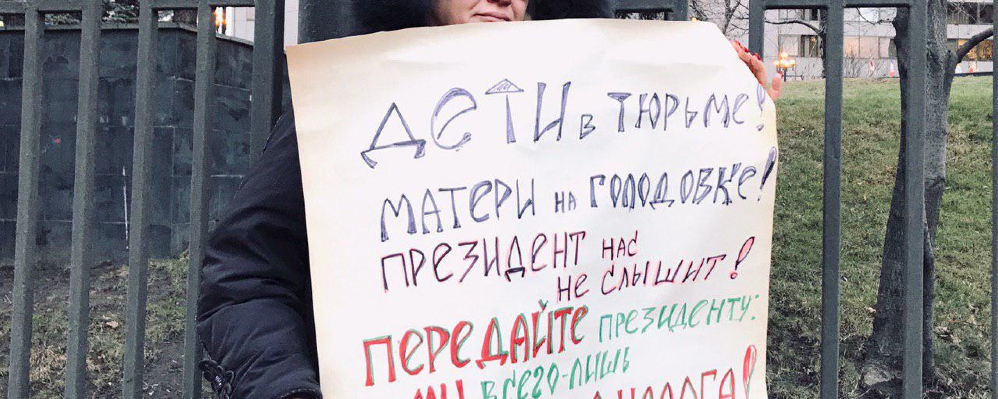 - Родителей политзаключенных задерживали на пикетах в защиту своих детей на Кремлевской набережной 7 декабря 2019 года.