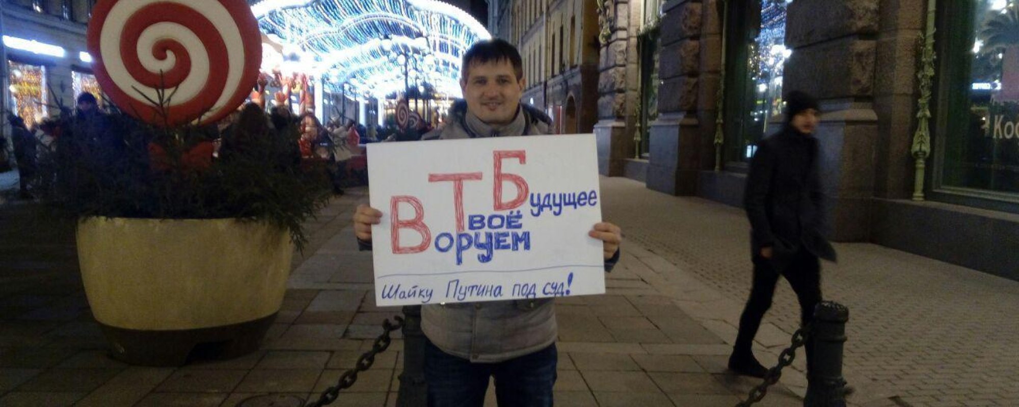 Полицейские объяснили задержание тем, что плакат Мусин якобы оскорбляет президента России. На плакате была надпись: «Воруем Твое Будущее. Шайку Путина под суд!».