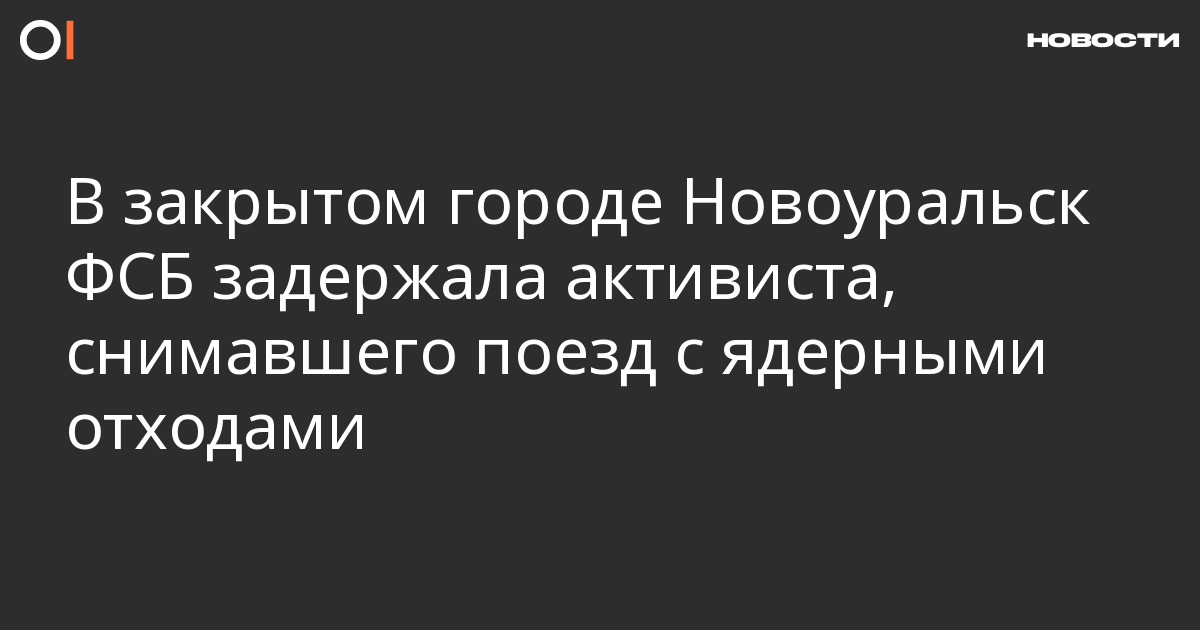 В закрытом городе Новоуральск Свердловской области сотрудники ФСБ задержали экоактивиста Виктора Казакова, который снимал на видео прибывший железнодорожный состав с «урановыми хвостами» из Германии. Об этом сообщает пресс-служба Greenpeace.