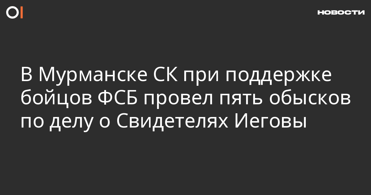 В Мурманске СК при поддержке бойцов ФСБ провел обыски по пяти адресам в рамках уголовного дела против Свидетелей Иеговы. Об этом сообщается на сайте Следственного управления СК по Мурманской области.
