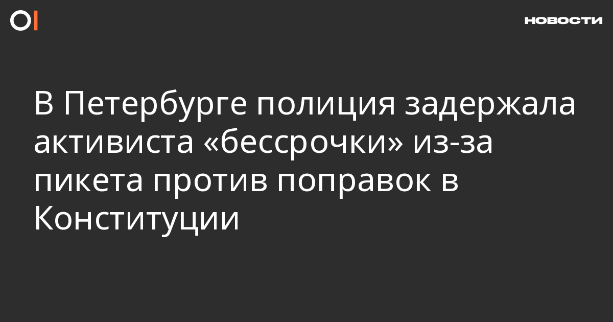 В Петербурге на Малой Садовой улице полиция задержала сторонника «Бессрочного протеста» Евгения Мусина из-за одиночного пикета против поправок в Конституцию. Об этом ОВД-Инфо сообщил знакомый Мусина, один из сторонников «бессрочки».