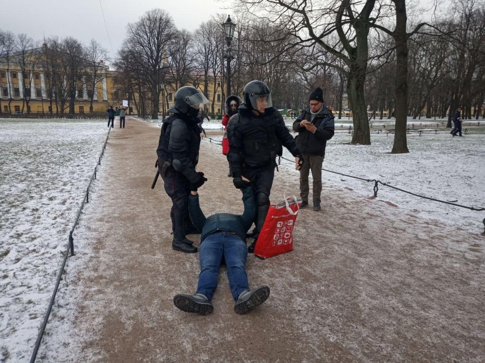 В Санкт-Петербурге на Сенатской площади 1 февраля состоялся народный сход против изменения Конституции. Через полчаса после начала мероприятия полицейские стали задерживать собравшихся, сообщили очевидцы в правовой бот ОВД-Инфо.