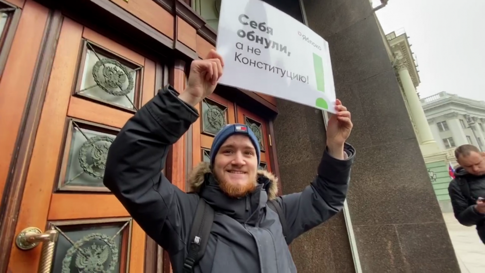 В Москве возле здания Госдумы полиция задержала Дмитрия Посицельского, участника одиночного пикета против изменения Конституции и «обнуления» президентских сроков Владимира Путина. Об этом ОВД-Инфо сообщила автор телеграм-канала «цвеТЫ для володи» Вера Олейникова.