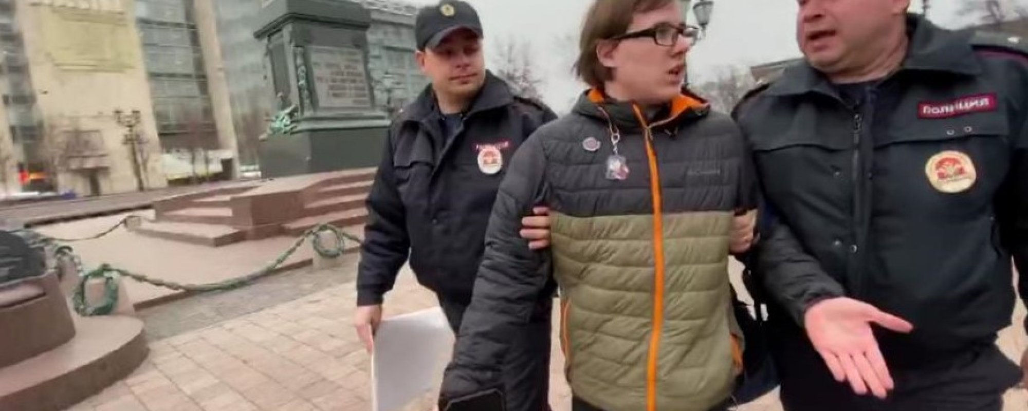 В Москве у памятника Пушкину задержали активиста «Бессрочного протеста» Даниила Галицкого, сообщили очевидцы на горячую линию ОВД-Инфо.