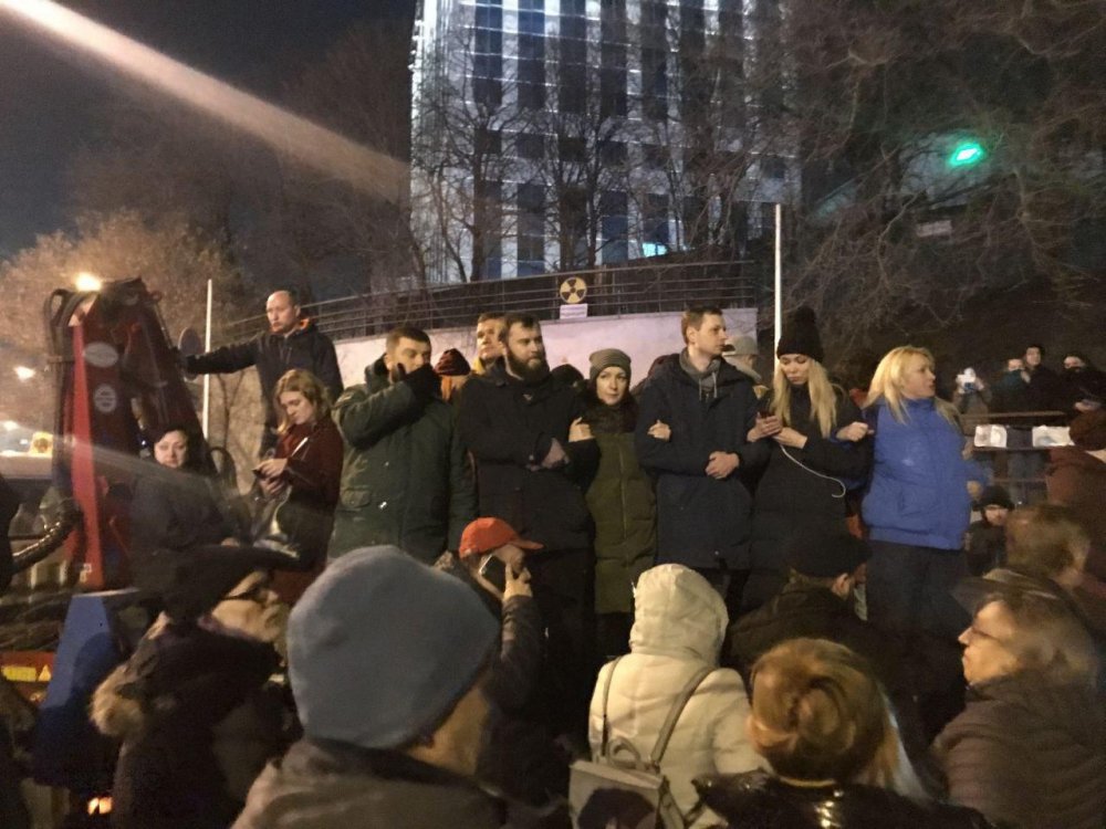 На момент написания новости активисты встали на эвакуатор, мешая эвакуации «Газели».