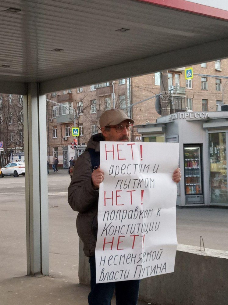 Он держал по очереди два плаката, на которых было написано «Обнулись» и «Путин уходи». «Я постоял в пикете и направился к Тверской. Подошли полицейские, потребовали показать документы и мой плакат. Показать плакат я отказался, и меня задержали», — рассказал Посицельский.