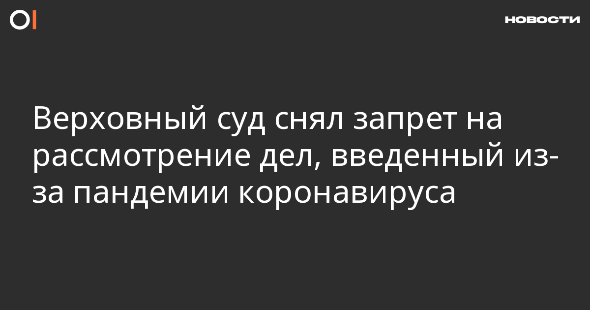 Верховный суд отменил запрет на рассмотрение дел из-за угрозы коронавируса. Об этом сообщается на сайте суда.