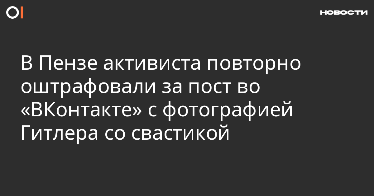 Железнодорожный районный суд Пензы 10 апреля присудил штраф в 2 тысячи рублей активисту Альберту Герасимову по статье о пропаганде нацистской символики (ч. 1 ст. 20.3 КоАП) из-за поста во «ВКонтакте», за который его уже штрафовали. Об этом сообщает издание «МБХ медиа».