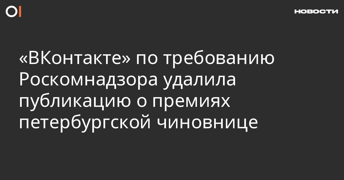 «ВКонтакте» по требованию Роскомнадзора удалила из группы «Наш дом — Лиговка-Ямская» публикацию о премиях для главы аппарата муниципального совета МО Лиговка-Ямская Петербурга Юлии Корнеевой. Об этом муниципальный депутат округа Александр Изотов рассказал изданию «МБХ медиа».