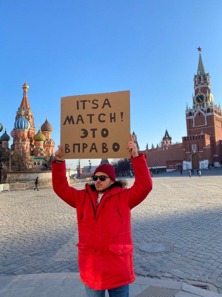 Штраф Добрынину назначили по статье о нарушении правил участия в публичном мероприятии (ч. 5 ст. 20.2 КоАП). Как пишет «Апология протеста», 23 марта Добрынин стоял в одиночном пикете с плакатом «It’s a match! Это вправо».