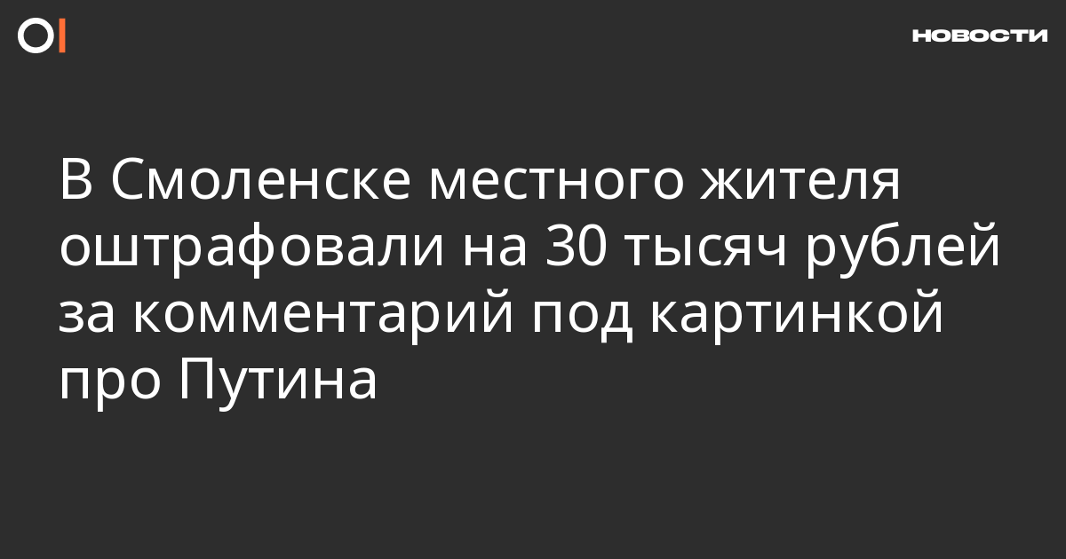 Ленинский районный суд Смоленска оштрафовал местного жителя Антона Новикова на 30 тысяч рублей за комментарий во «ВКонтакте» под изображением Путина с надписью «Путин мужик, слава России». Об этом изданию «Медиазона» рассказали в правозащитной группе «Агора».