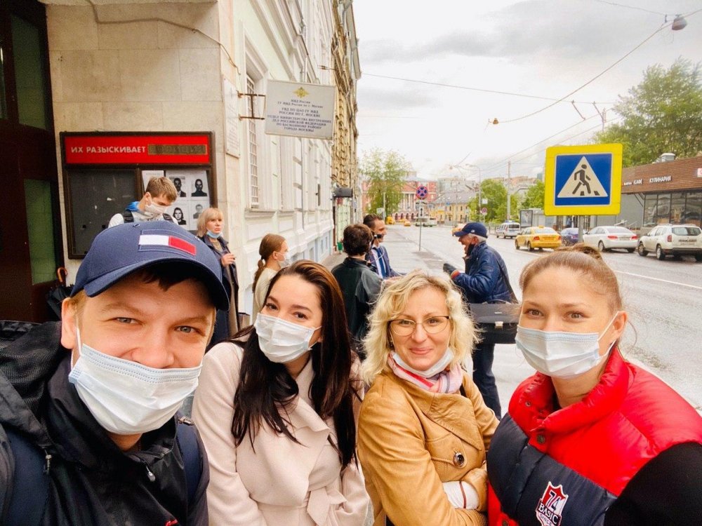 На Максима Кондратьева, Сергея Десницкого и Екатерину Селезневу составили протоколы о нарушении режима самоизоляции (ч. 2 ст. 3.18.1 КоАП Москвы) и обязали задержанных явиться в отдел позднее, чтобы решить, составлять ли на них протокол по статье об участии в несогласованной публичной акции (ч. 5 ст. 20.2 КоАП).