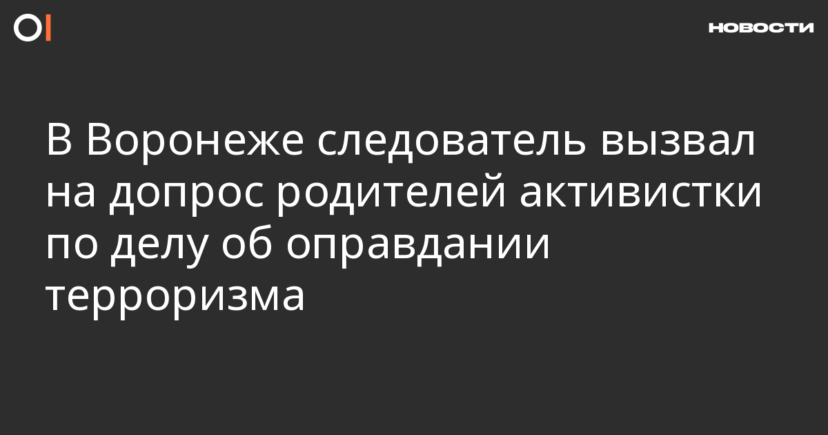В Воронеже следователь вызвал на допрос пожилых родителей местной активистки Надежды Беловой, обвиняемой по статье об оправдании терроризма (ст. 205.2 УК). Об этом сама Белова сообщила ОВД-Инфо.