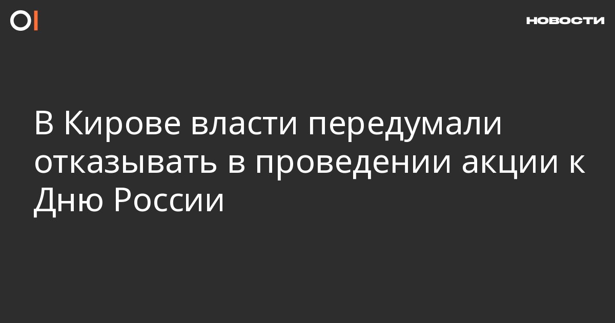 Администрация Губернатора и Правительства Кировской области решила не отказывать в проведении акции к Дню России в центре Кирова. Об этом на своей странице «Вконтакте» сообщает организатор мероприятия Вадим Ананьин.