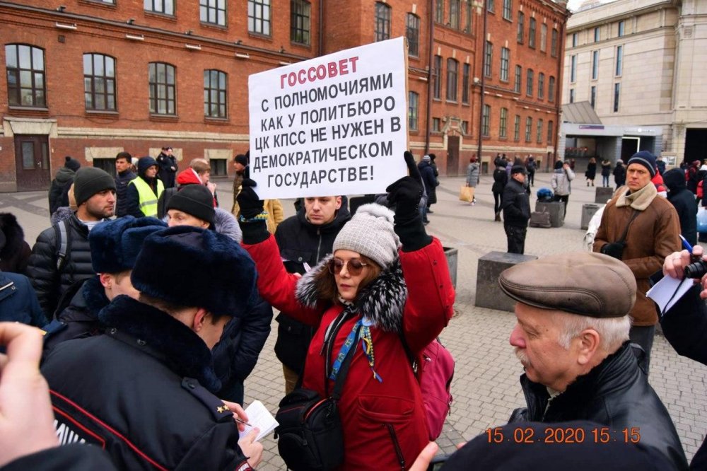 В Петербурге 15 февраля прошла акция за сохранение Конституционного строя и против поправок в Конституцию. На акции полицейские задержали более 10 человек.