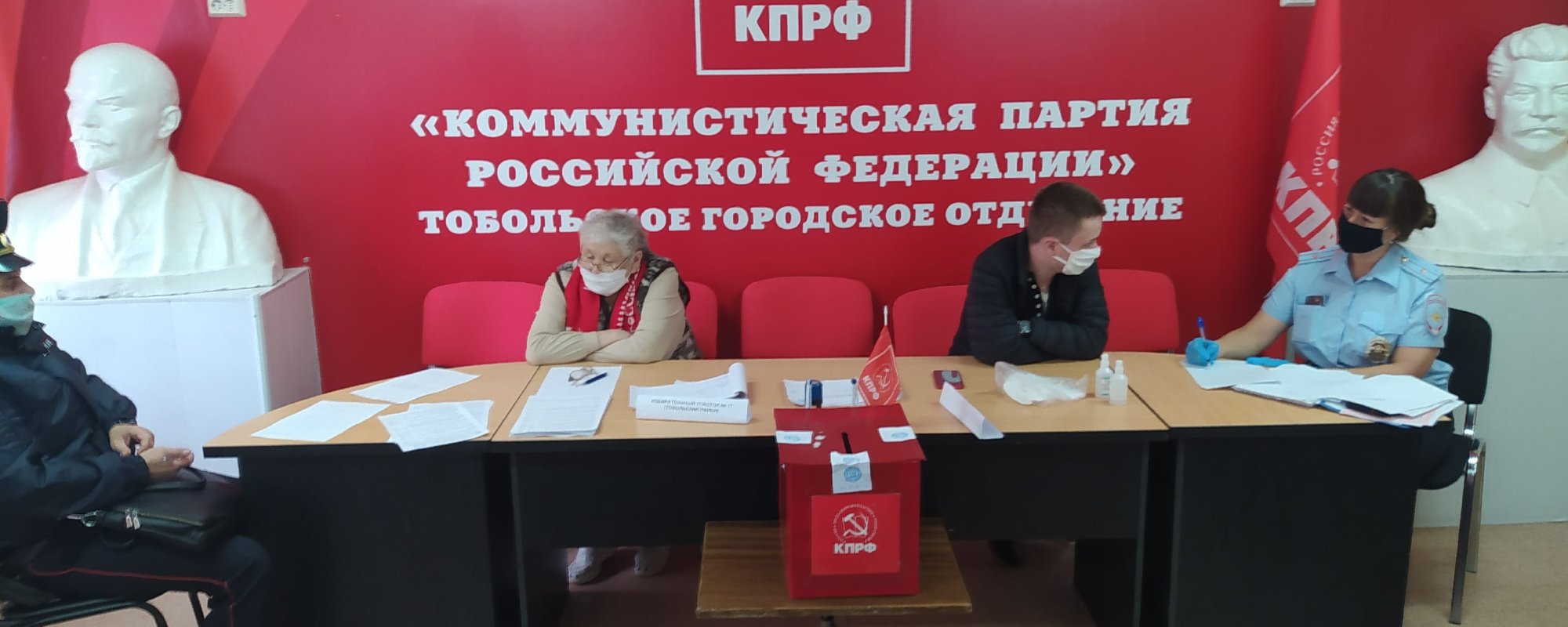 В Тобольске Тюменской области в местное отделение КПРФ пришли полицейские. В офисе коммунисты проводят акцию «Альтернативное голосование». Об этом ОВД-Инфо рассказал член Бюро Тюменского обкома КПРФ Алексей Беломоев.