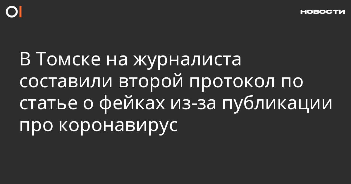 В Томске полиция составила второй протокол по статье о фейк-ньюс (ч. 9 ст. 13.15 КоАП) на журналиста издания «Московский комсомолец в Томске» Станислава Микрюкова. Об этом журналист рассказал на своей странице во «ВКонтакте».