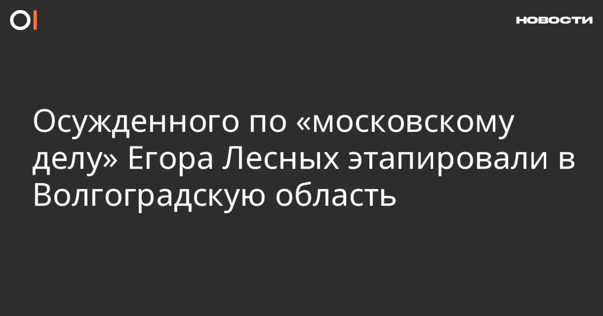 Осужденного по «московскому делу» Егора Лесных этапировали в Волгоградскую область. Об этом ОВД-Инфо сообщила его невеста Дарья Блинова.