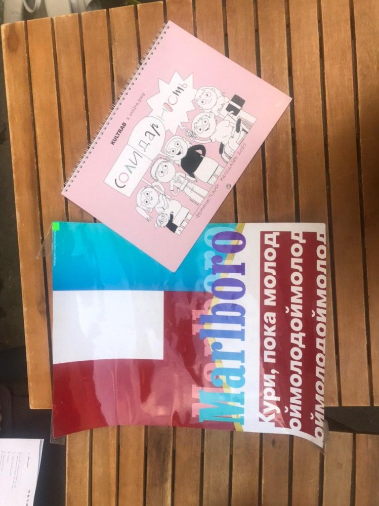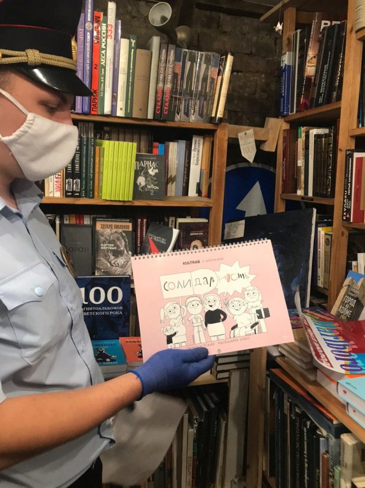 19:30 В магазин прибыл адвокат от ОВД-Инфо Сергей Тельнов. Полиция изымает календарь «Солидарность» и плакат «Marlboro».