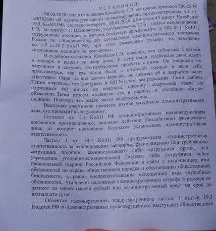 Какабадзе признали виновным по статье о неисполнении законного требования полицейского (ч. 1 ст. 19.3 КоАП). По мнению полиции и суда, он отказался добровольно проследовать в отдел полиции для составления протокола.
