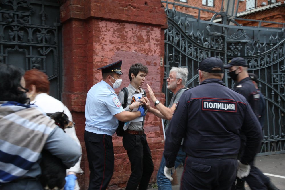 По словам Яхина, его и Лиду задержали из-за плакатов в защиту завода, которые они держали в руках. Полицейские сочли это нарушением и доставили участников акции в отдел полиции по Дорогомиловскому району.